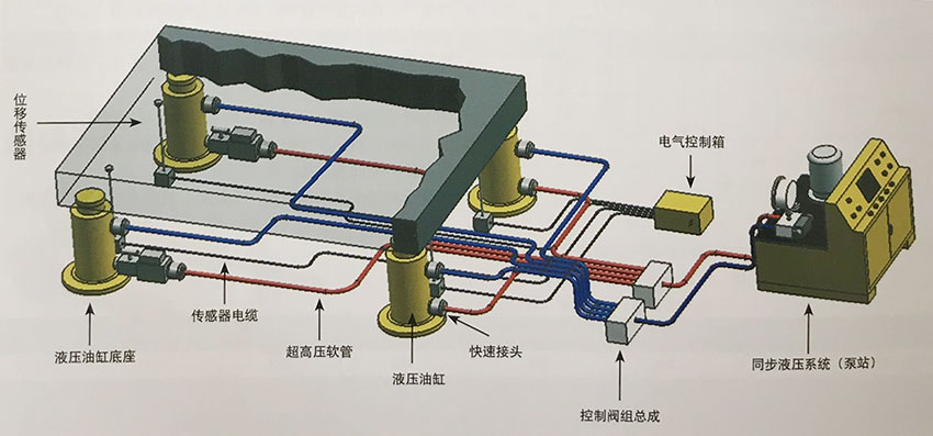 2.同步頂升能力200Ton至10000Ton,頂升高度: 10-500mm